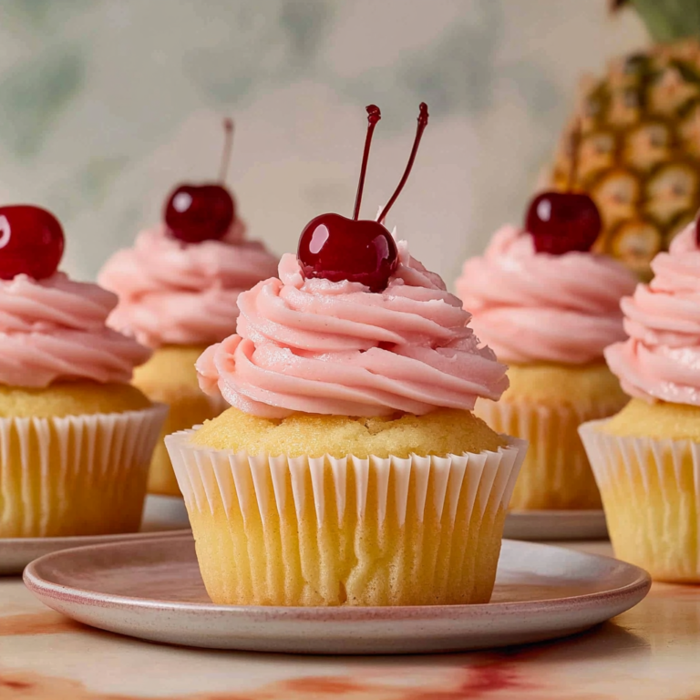 Tropical Pineapple Cupcakes with Cherry Buttercream Bliss