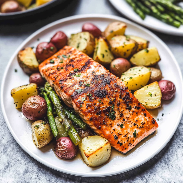 Easy Sheetpan Salmon And Potatoes With Veggies Recipe