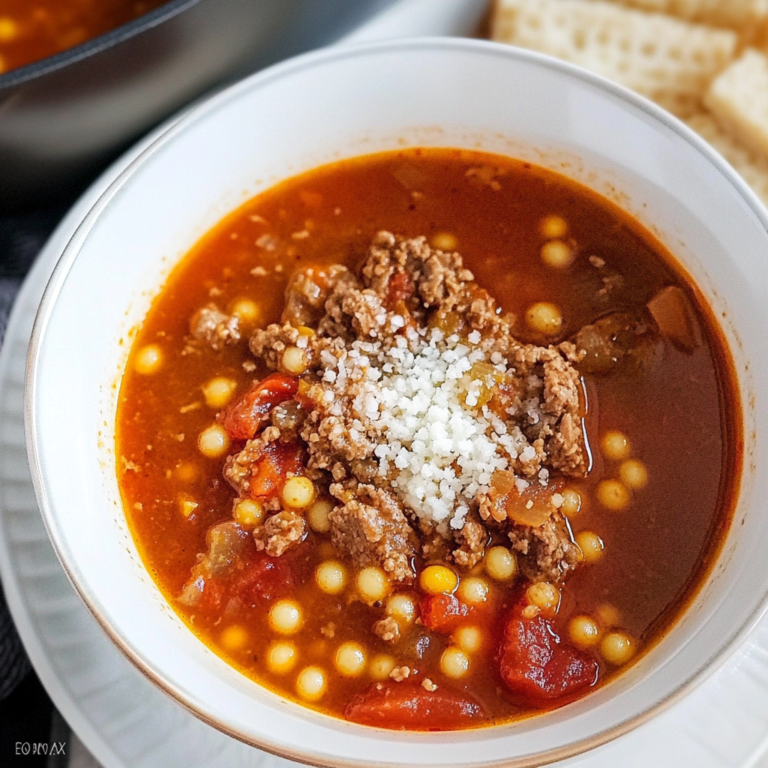 Savory Beef Tomato and Acini di Pepe Soup Recipe