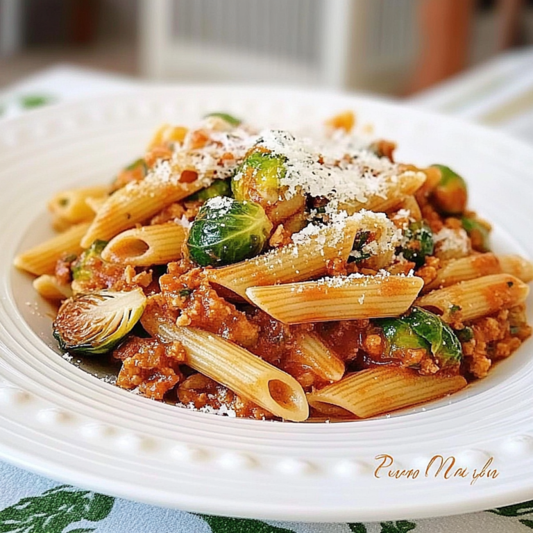 Delicious Penne Pasta with Brussels Sprouts in Ragu