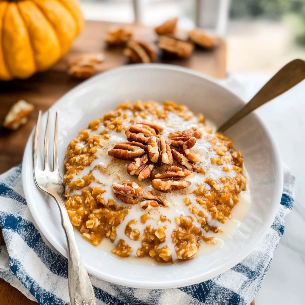 Indulge in the cozy flavors of pumpkin oatmeal, a creamy and nutritious breakfast that warms both body and soul. Perfect for chilly mornings, this dish combines rolled oats with rich pumpkin puree and aromatic spices. Top it off with crunchy pecans and a drizzle of maple syrup for a delightful start to your day. Easy to prepare and customizable, pumpkin oatmeal is not just a meal; it’s a comforting experience that can be enjoyed year-round.