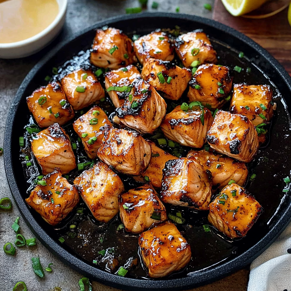 Start by marinating the salmon bites while preheating your oven. Bake them until crispy and golden for the best results.