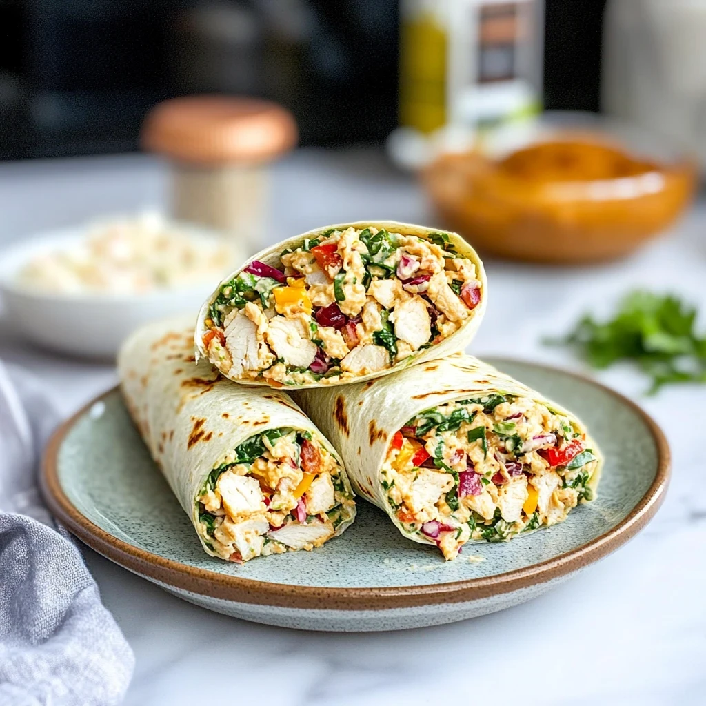 Wrap It Up: Lay out large tortillas on a clean surface and spoon generous portions of your chicken salad mixture onto the center of each tortilla. Fold in the sides and roll tightly from the bottom up to create a secure wrap. The first bite should feel satisfying as you experience that lovely crunch from the veggies against the tender chicken!