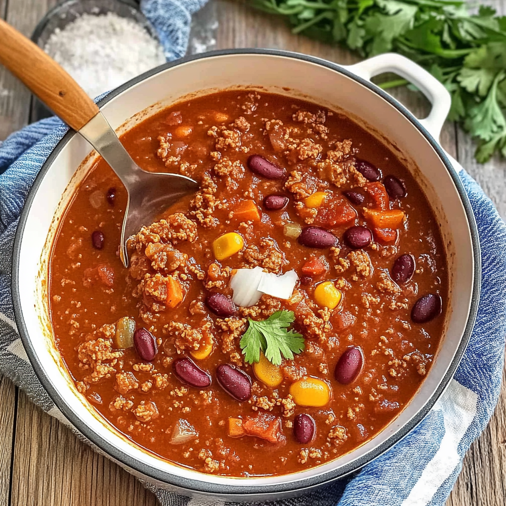 Indulge in the warmth of homemade beef chili, a delightful blend of rich spices and hearty ingredients that elevate any meal. This comforting dish, perfect for game days or cozy family dinners, combines tender ground beef, vibrant vegetables, and flavorful spices for a bowl of happiness that everyone will love.