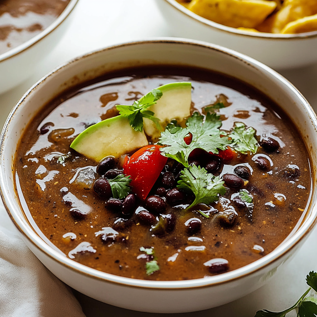 The rich aroma of simmering spices fills the air as you imagine a warm bowl of black bean soup waiting for you. Each spoonful promises a delightful blend of flavors that dance on your taste buds, inviting you to come back for more.