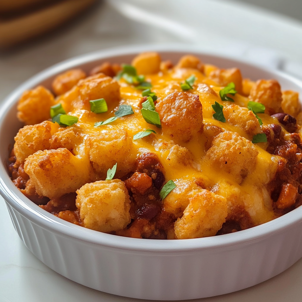 Chili Tater Tot Casserole is a cozy and flavorful dish that layers savory chili, crispy tater tots, and gooey cheese for a satisfying meal perfect for any gathering.