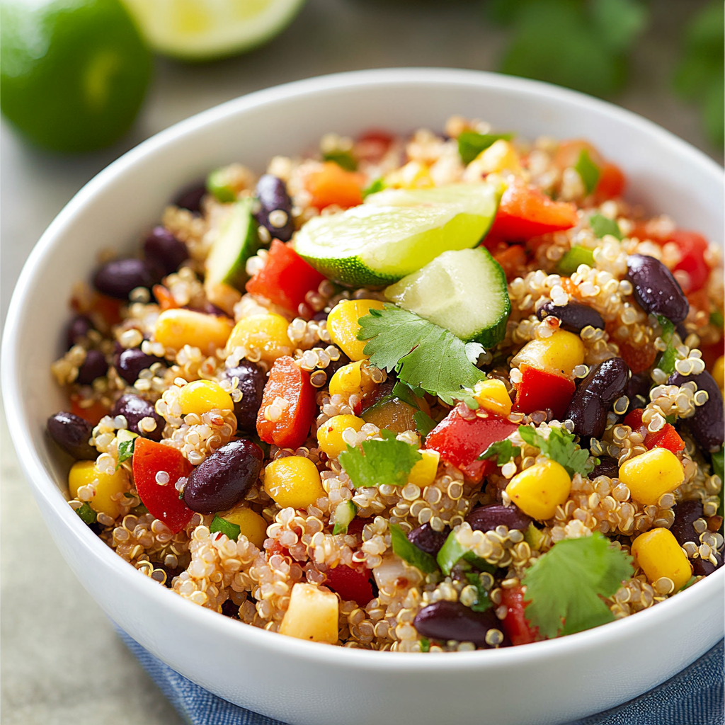 Delight in the vibrant flavors of Southwest Quinoa Salad, a nutritious dish that combines fluffy quinoa with fresh, colorful vegetables and zesty lime dressing. Perfect for summer barbecues, meal prep, or as a quick lunch, this salad is both satisfying and versatile. Packed with protein from quinoa and fiber from black beans and corn, it provides essential nutrients to fuel your day. The refreshing kick of lime juice and the warmth of cumin elevate this dish to a flavor-packed experience that everyone will love. Enjoy it as a standalone meal or pair it with grilled chicken for an extra protein boost. This easy-to-make salad will quickly become a favorite in your healthy eating repertoire.