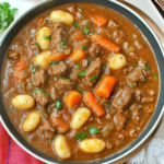 Chunky beef and gnocchi soup is a hearty dish combining tender beef, pillowy gnocchi, and vegetables.
