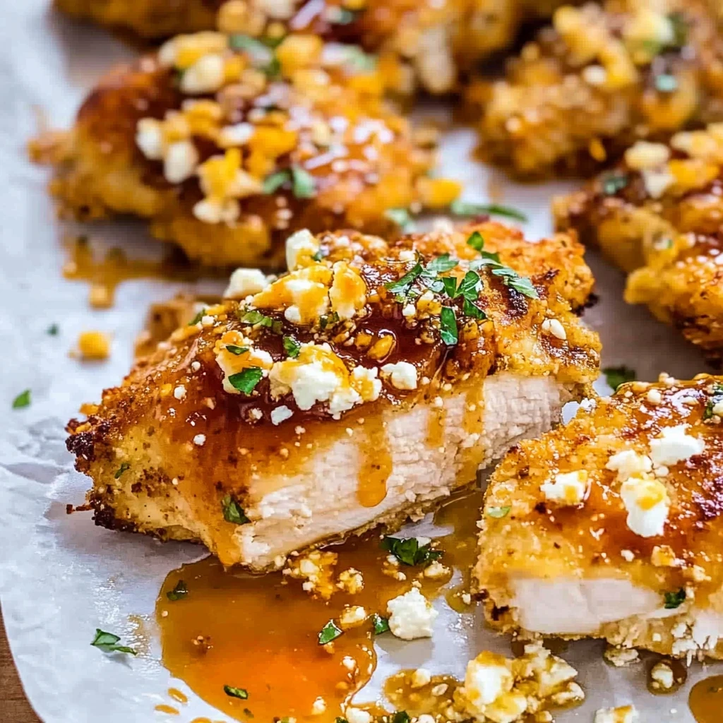 - The golden-brown chicken topped with creamy feta and drizzled with hot honey looks like a masterpiece on your dinner table
