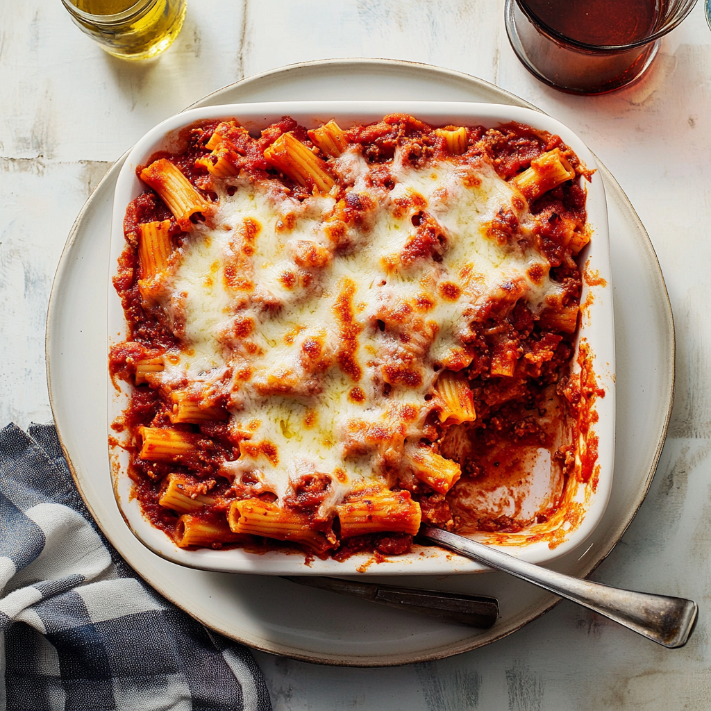 Baked Ziti is the ultimate comfort food, combining layers of al dente pasta, rich marinara sauce, and gooey melted cheese. This crowd-pleaser is perfect for family gatherings or cozy dinners at home. With its warm, inviting aroma and hearty flavor, every bite will have you reminiscing about cherished moments spent around the dinner table. Easy to prepare and endlessly customizable, this baked ziti recipe is sure to become a favorite in your household.