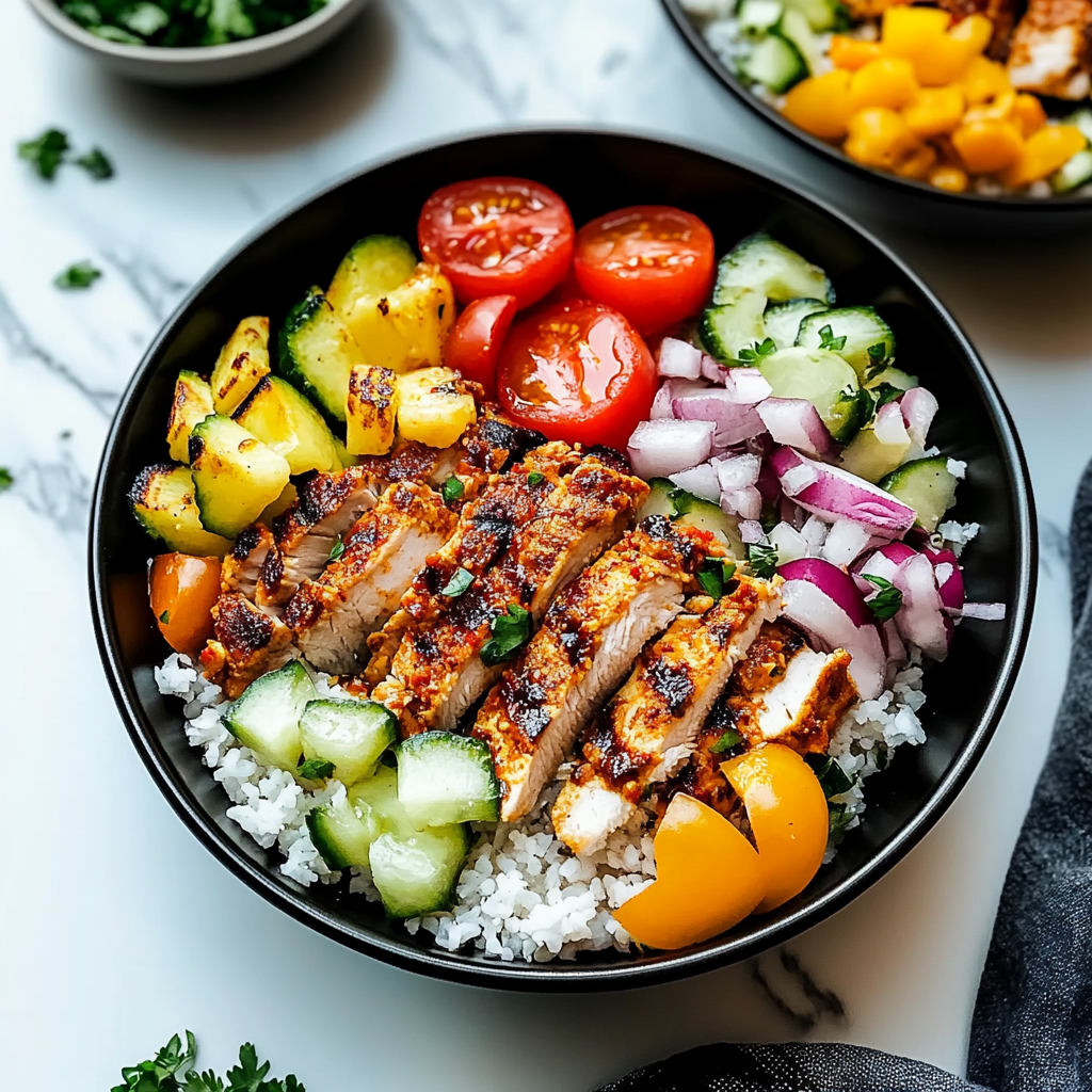 A Chicken Gyro Bowl is a delicious Mediterranean dish featuring seasoned chicken and fresh toppings.