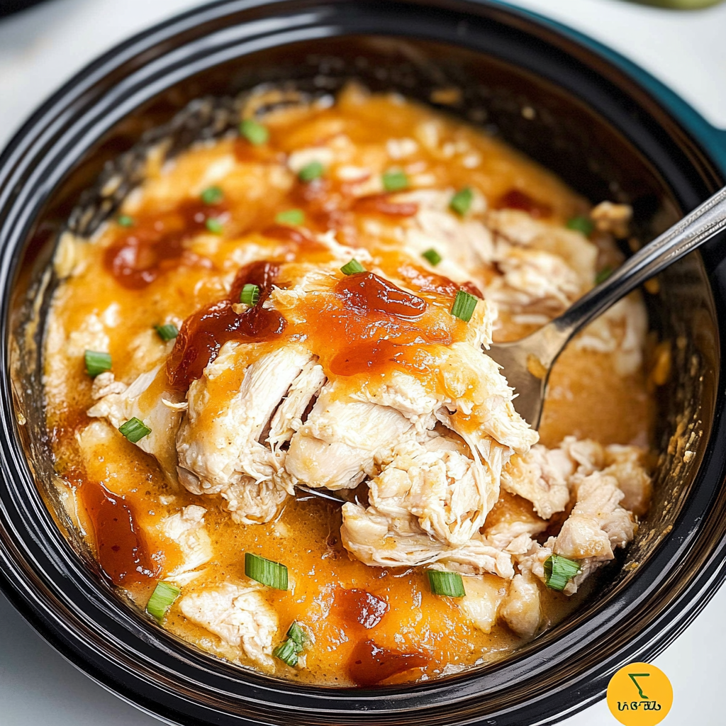 Garnish and Serve: Once done, shred the chicken using two forks right in the crockpot. Top with crispy bacon bits and chopped green onions before serving.