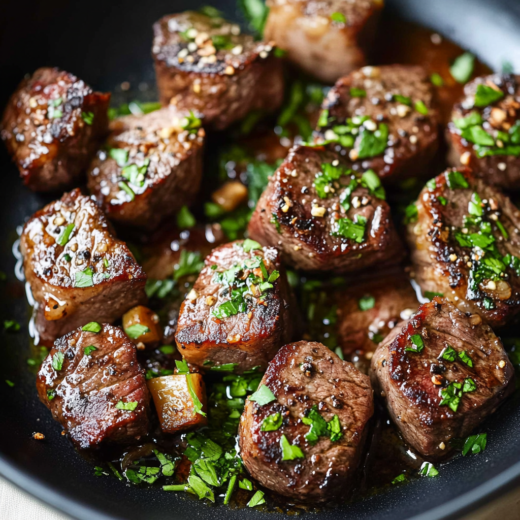 Garlic Butter Steak Bites are a savory sensation, featuring tender beef infused with rich garlic and buttery goodness. Perfect as an appetizer or main dish to impress at any gathering!