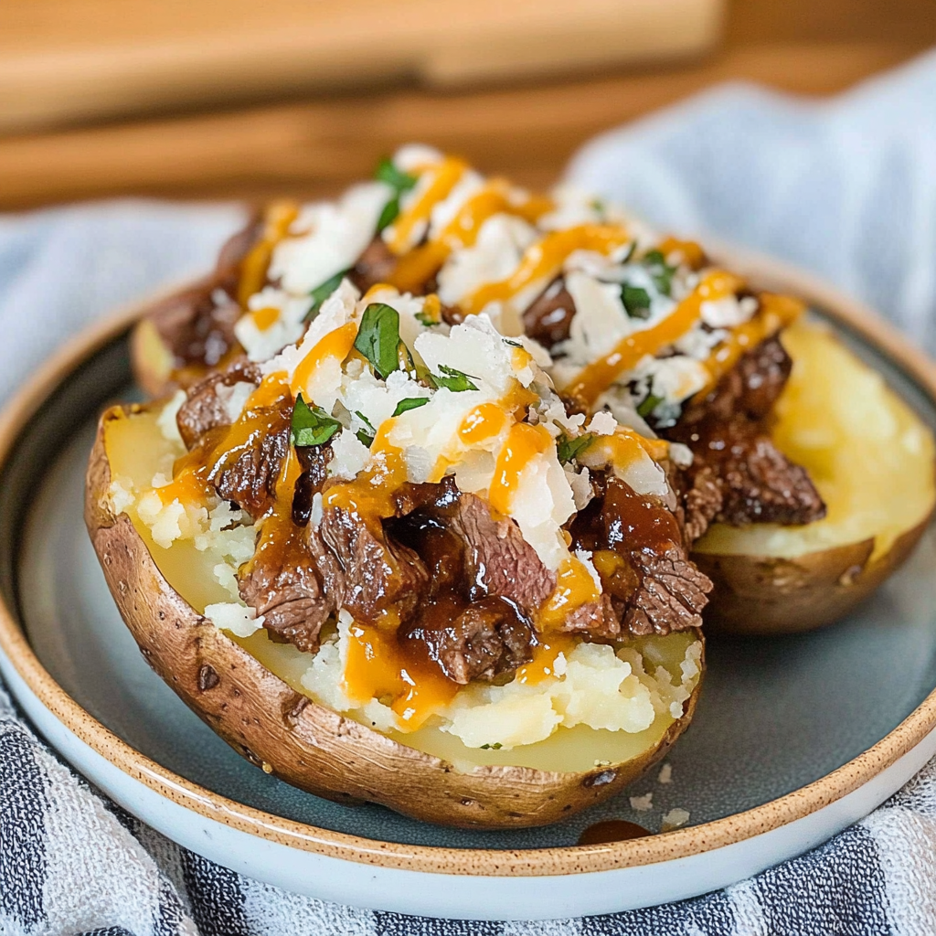 - This Loaded Steak Baked Potato recipe is incredibly easy to prepare, making it perfect for busy weeknights or special occasions
