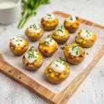 I remember watching my friends’ eyes widen when they took their first bite of these Mini Loaded Potatoes; it felt like I had just won an Oscar for best supporting snack! For more inspiration, check out this creamy vegan potato soup recipe.