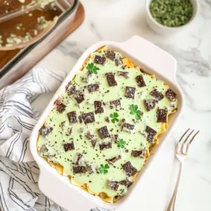 This Shamrock Lasagna isn’t just for St. Paddy’s Day; it’s perfect for family gatherings or cozy dinners when you want to impress without breaking a sweat. great pairing with Shamrock Lasagna Trust me, once you take that first delicious bite, you’ll be singing tunes of joy—probably even doing a little jig in your kitchen!