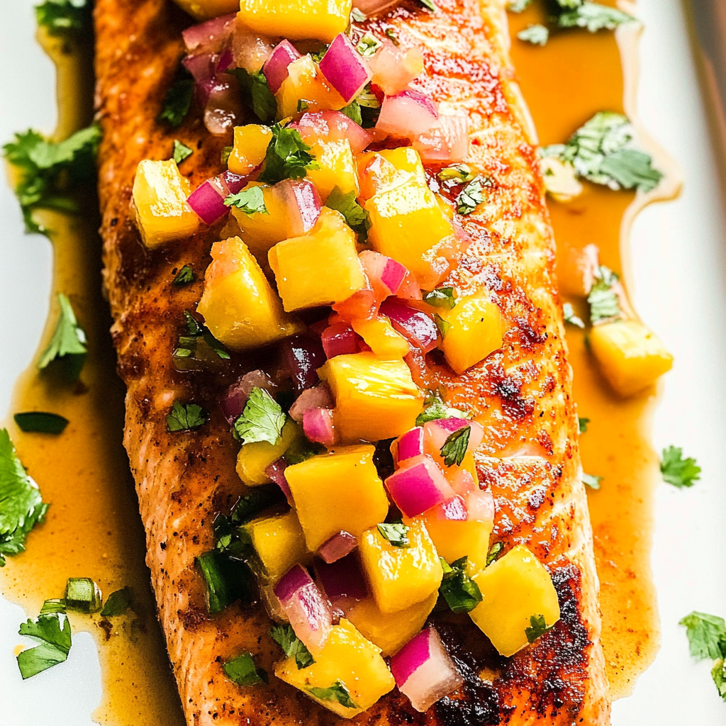 Experience a tropical explosion of flavor with this Sheet-Pan Salmon topped with vibrant Mango Salsa and Quick Pickled Red Onions. This dish combines tender salmon fillets with zesty mango, fresh cilantro, and a tangy crunch, creating a visually stunning meal perfect for summer evenings or any gathering. Quick to prepare, it’s an impressive yet effortless way to delight your guests.