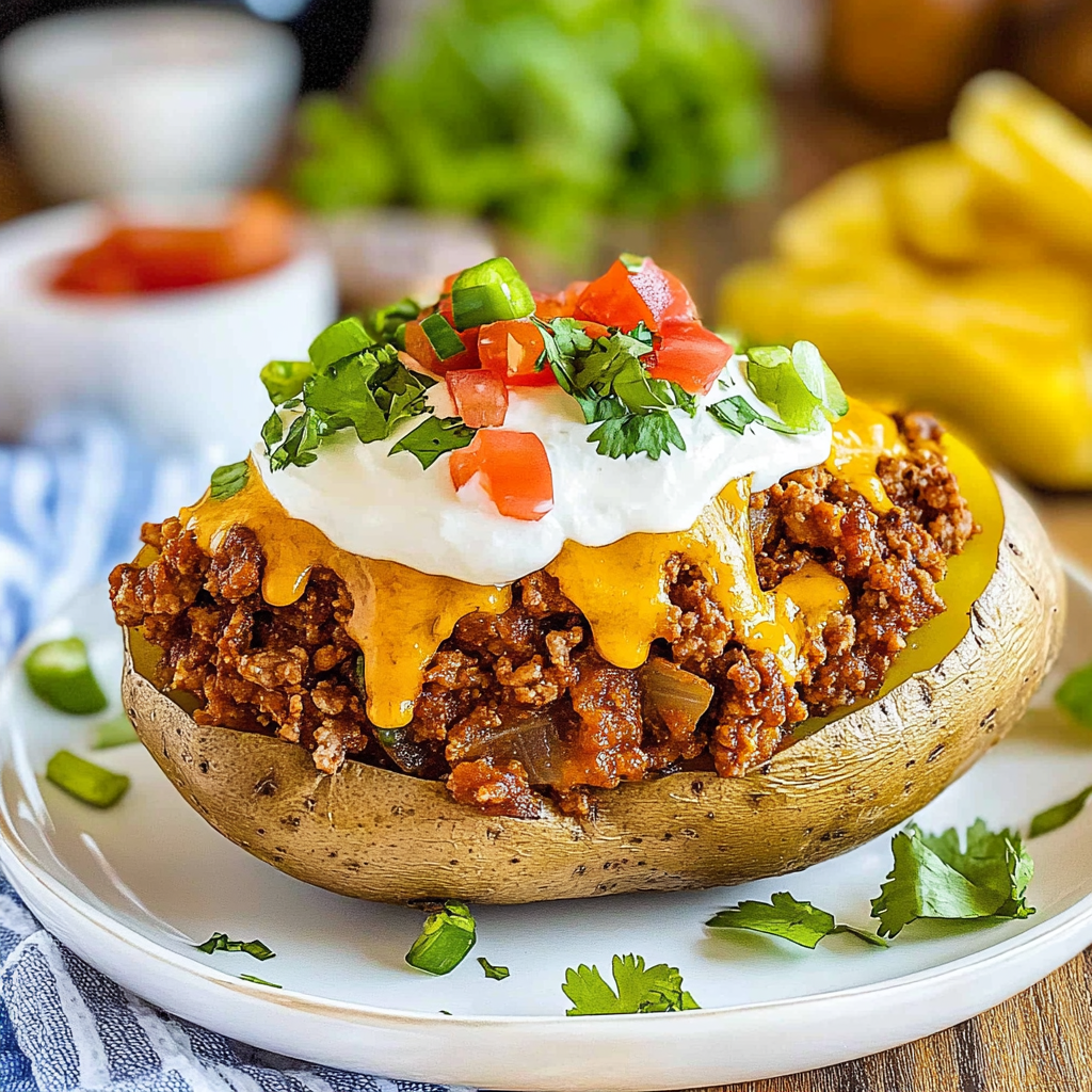 Enjoy this delightful fusion of flavors that will leave you wondering why you ever chose between tacos and baked potatoes in the first place!
