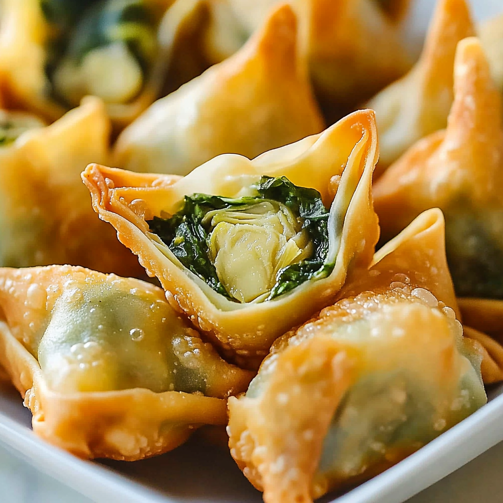 Spinach Artichoke Wontons are crispy, delicious pockets filled with creamy spinach and artichoke goodness. Perfect for parties or cozy nights in, these bite-sized treats are sure to impress.