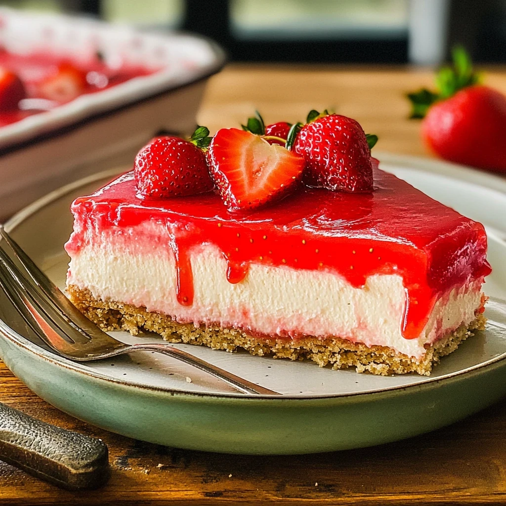 Serve and Enjoy: Once chilled, slice into your strawberry delight and serve it up on individual plates or in dessert cups. Consider drizzling some extra strawberry sauce or whipped cream on top for an extra treat! As you savor each bite, take a moment to enjoy how all those simple ingredients transformed into something truly spectacular—perfect for any occasion!