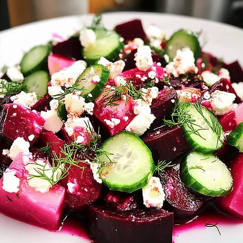 Beet Salad with Feta, Cucumbers & Dill is a vibrant dish that brings together earthy beets, creamy feta, and crisp cucumbers, all enhanced by the fresh brightness of dill. This colorful salad is perfect for any occasion, from summer barbecues to cozy family dinners. Easy to make and visually stunning, it’s sure to impress your guests and keep them coming back for more.